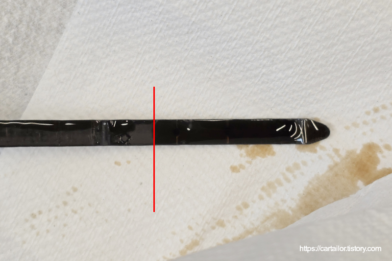 시동을 끄고 수분 후, 레벨을 확인합니다. 정량 잘 세팅되었습니다.