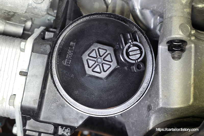 다시 시동을 걸어 작업 부위를 확인합니다. 필터, 플러그 모두 깨끗합니다.