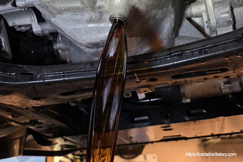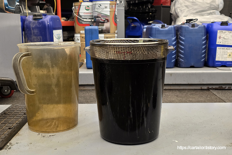 배출된 기존 전륜과 후륜 디퍼런셜오일입니다.