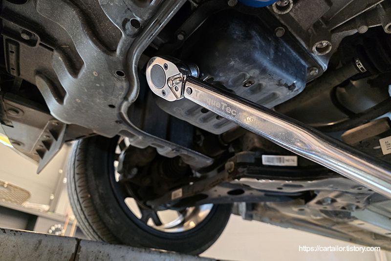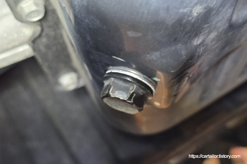 드레인플러그 와셔를 교환 후, 규정 토크로 체결해 마무리합니다.