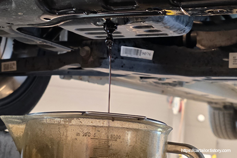 필터를 제거 후, 엔진오일을 배출합니다.