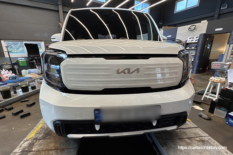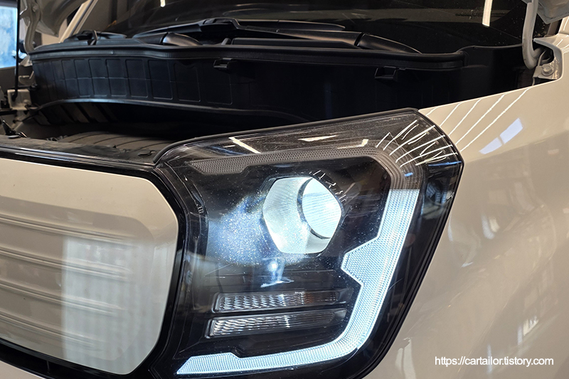 신차 출고 후 첫 엔진오일교환시기가 도래하여 입고된 23년형 더뉴레이 시그니처 트림입니다. 또한 그간 불편했던 야간 시야 개선 및 외관 튜닝을 위해 합법 인증 LED 벌브 장착도 함께 진행하게