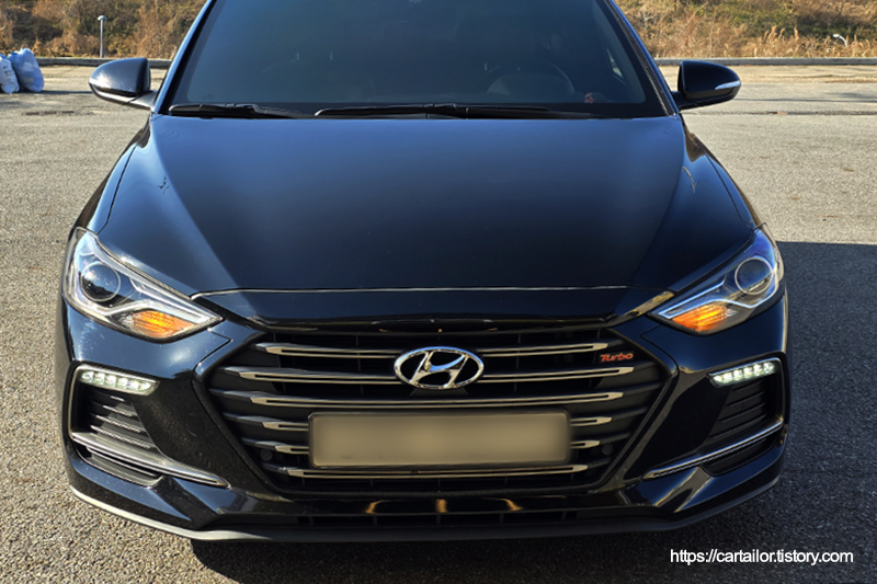 아반떼AD 1.6 GDI 모델로, 다소 심심한 전면부를 AD스포츠룩으로 변경하고 여러모로 아쉬운 할로겐 전조등과 DRL 그리고 후미등을 변경하기 위해 입고되었습니다. 현재 적용된 전조등 및 주간주
