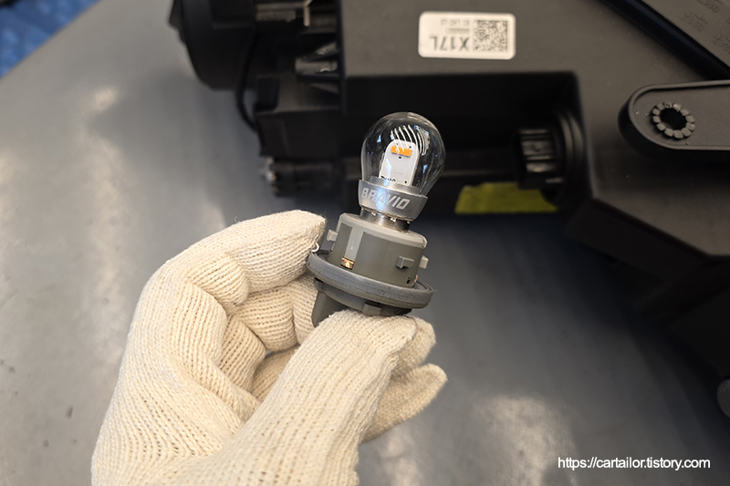 교체할 부위들의 할로겐 전구를 제거합니다.