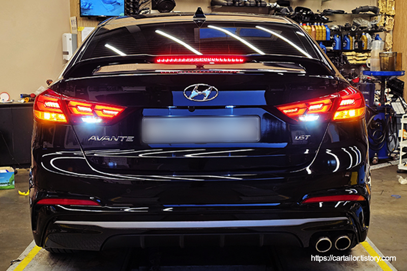 전, 후면 방향지시등과 후진등은 LED로 변경하기 위해 입고된 아반떼AD 1.6T-GDI 차량입니다.