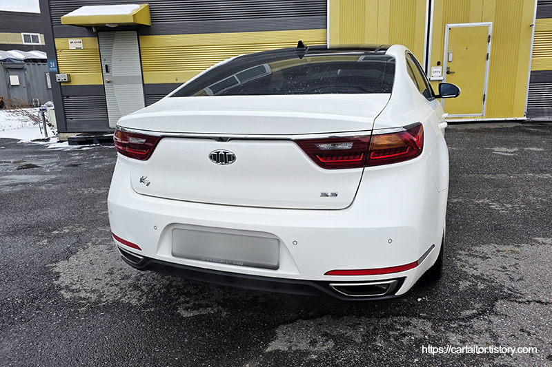 엔진오일교환 작업을 위해 입고된 기아 올뉴K7(YG) 3.3 GDI 가솔린 모델입니다. V6 3.3리터 엔진과 8단 자동변속기가 조화를 이루어 부드럽고 넉넉한 주행감을 선사합니다.