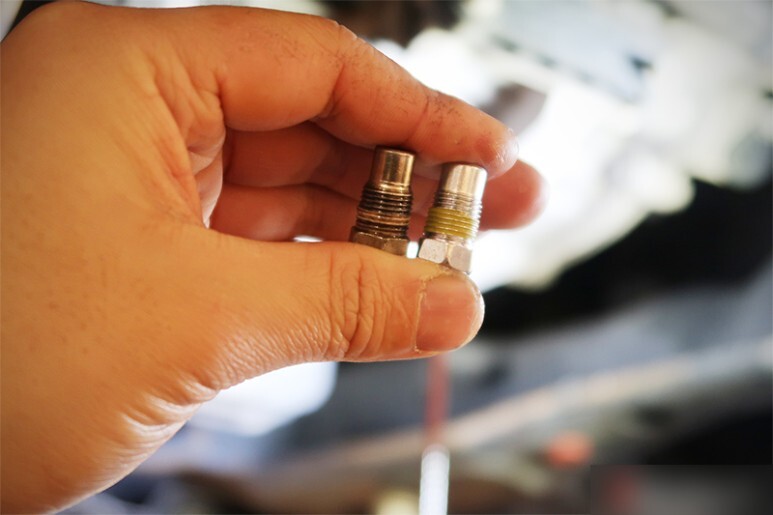 배출이 끝났으면, 드레인플러그를 다시 새지 않을 정도만 임시로 잠궈 줍니다.