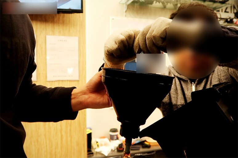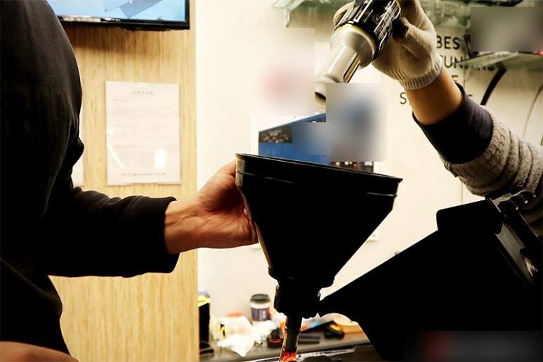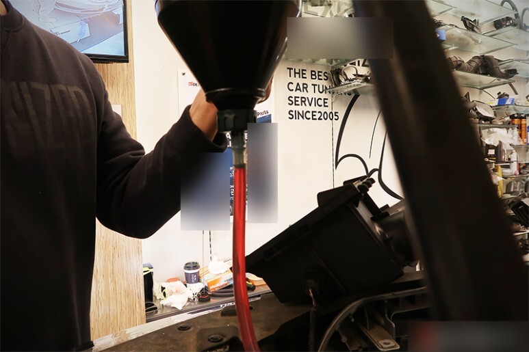 신유 주입 중간에 첨가제도 넣어줍니다. 개인적으로 별다른 이슈가 없는 차량에 첨가제의 사용은 지양하고 있으며, 선호하지 않을 뿐 더라 생각보다 마진도 없습니다만, 미세 누유의 경우 소요되는 수리비 대비 매우 가격이 저렴하고, 비교적 효과가 높기 때문에 복원제와 누유방지제는 상황에 따라 적절하게 권해 드립니다. 단, 누유부위가 메탈가스켓인 경우나, 누유가 너무 심한경우는 권하지 않습니다. 이 때는 물리적인 수리가 필요합니다.