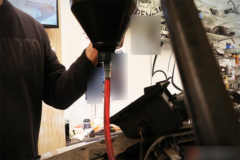 다시한번 에어크리너 하우징을 들어내고, 마지막으로, 신유를 주입합니다.