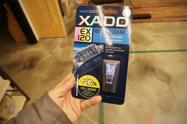 정확하게 체결한 드레인볼트 주위를 깨끗하게 세정해 줍니다. 미션오일 팬 등에 미세 누유가 관찰이 되는데, 이 또한 미션오일 교환이 제 때 이루어지지 않아, 각종 고무 씰링을 경화시키고 수축시켜서 발생할 수 있는 결과 중 하나 입니다. 교체주기가 지난 불량한 미션오일은 산화되어 고무링을 경화시키고 부식시켜 미세 누유를 유발합니다. 밖에 보이는 결합부도 저 모양이니, 내부 수십개의 씰과 고무 파츠가 걱정되어, 경화된 고무소재의 씰을 탱탱하게 복원시켜 누유를 멈추게 하고 내부 각종 밸브의 유압소손을 방지하여 정확한 유압제어가 이루어질 수 있게 도움을 주도록, 미션누유방지제 한병을 신유와 함께 주입하기로 합니다.