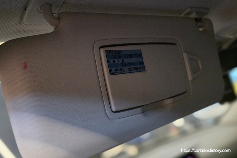 전용 진단기를 이용해 서비스 시기 초기화를 진행 후, 다음 엔진오일교환 주기를 기재한 스티커를 선바이저에 부착하면 작업이 종료됩니다.