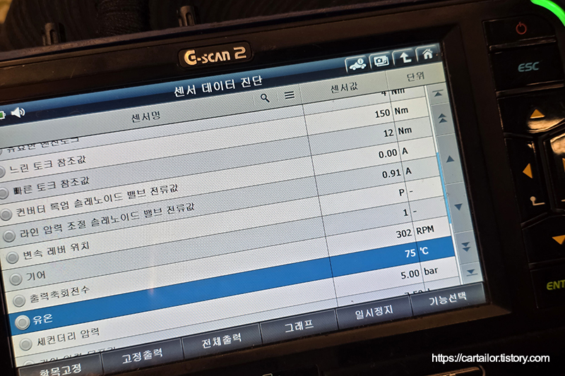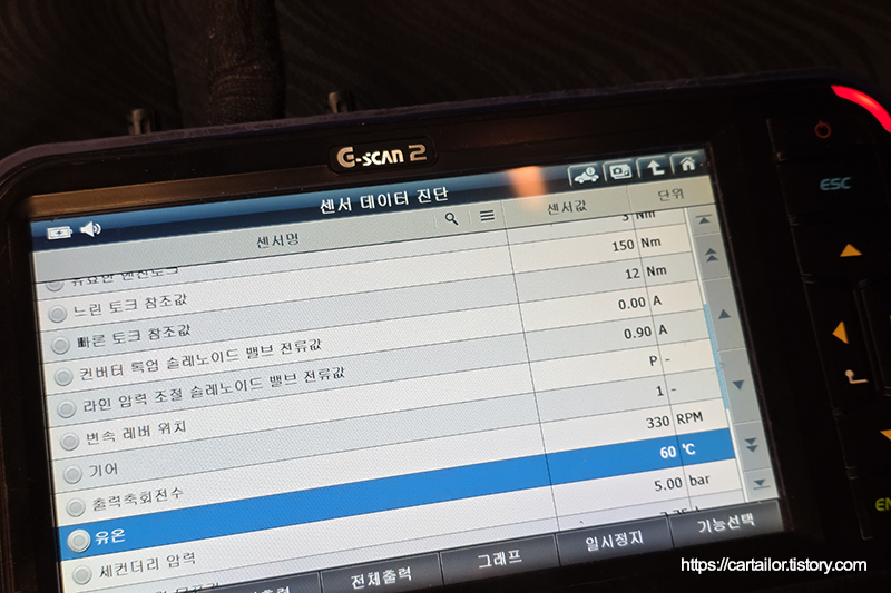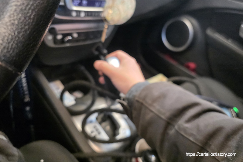 계산된 용량의 신유를 주입합니다. 신유 주입을 마쳤으면 시동을 걸어 유온을 올리는 시간을 갖습니다. 변속 시퀀스도 함께 진행합니다.