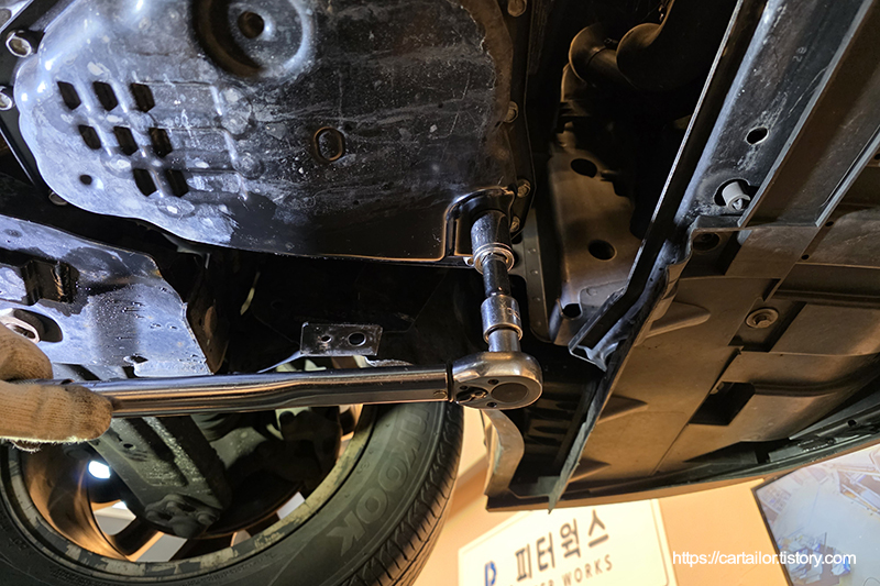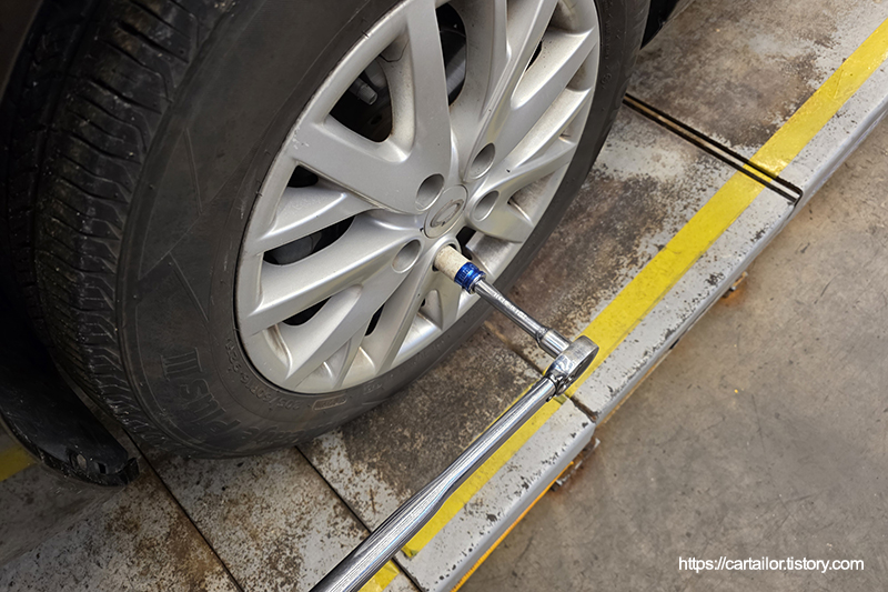 필터 교환을 위해 탈거했던 휠을 장착 후, 모든 고정 볼트들을 규정 토크로 체결해 마무리합니다.
