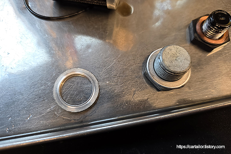 레벨링플러그 와셔를 신품으로 교환합니다.