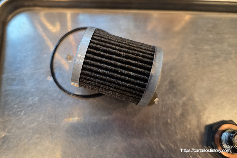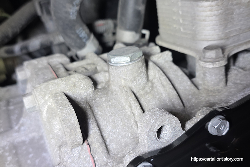 신품 IVTF 필터 삽입부 오링 2개에 신유를 발라 윤활해줍니다. 신품 IVTF필터를 장착 후, 신품 고정 볼트를 손으로만 돌려 가고정 후, 필터 위치 조정이 끝났으면 토크렌치를 이용해 규정 토크로 체결합니다.