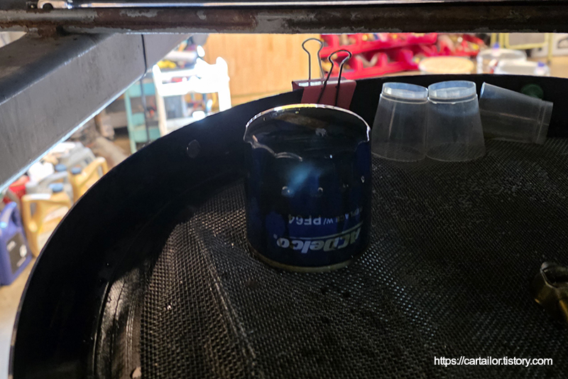 다시 시동을 걸어 필터, 드레인볼트 쪽 누유는 없는 지 꼼꼼하게 확인합니다. 깨끗합니다.