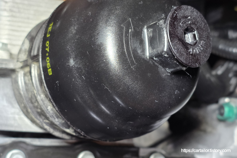 다시 시동을 걸어 작업 부위를 확인합니다. 오일필터, 플러그 모두 깨끗합니다.