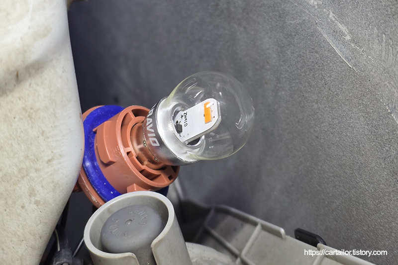 브라비오 LED를 장착합니다. 후면의 경우 범퍼 탈거 없이 전구 교체를 진행하는데 공간은 다소 협소한 편입니다.