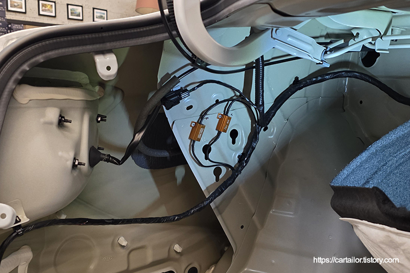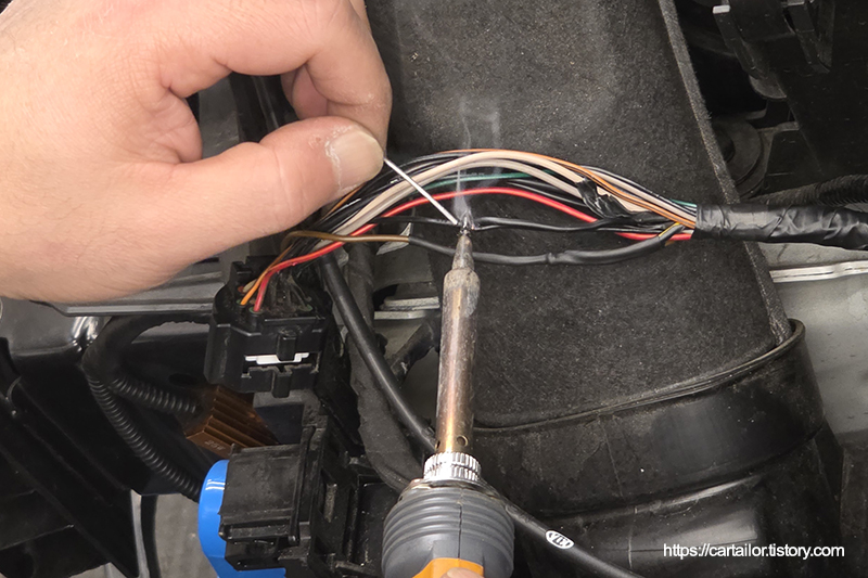 신규 배선은 납땜을 통해 튼튼하게 결속하였으며, 전기 테이프로 감싸 순정 출고 방식과 동일하게 마감하였습니다.