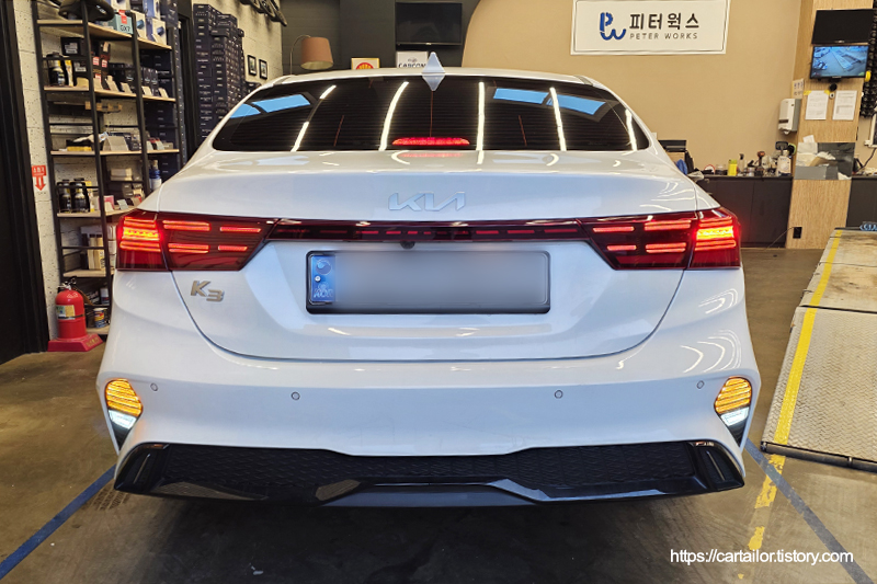 엔진오일교환 작업과 함께 합법 LED 튜닝을 진행하기 위해 입고된 24년형 더뉴K3 모델입니다.