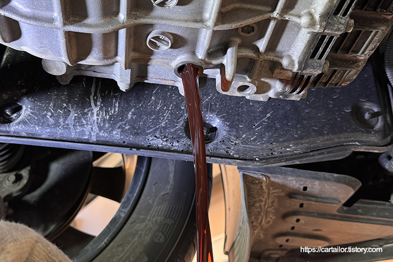 언더커버를 탈거 후, 기존 미션오일을 배출합니다.