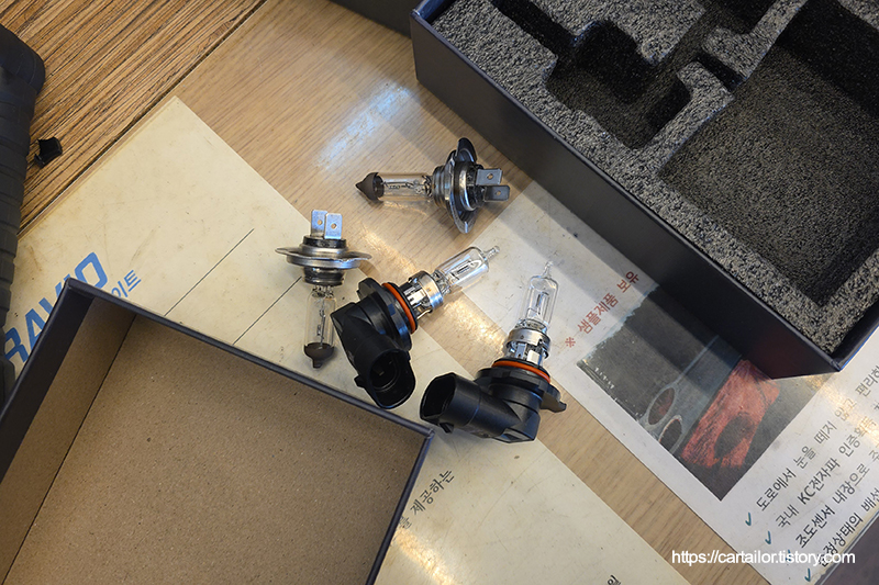 더스트캡을 탈거 후, 기존 할로겐 전구들을 제거합니다.