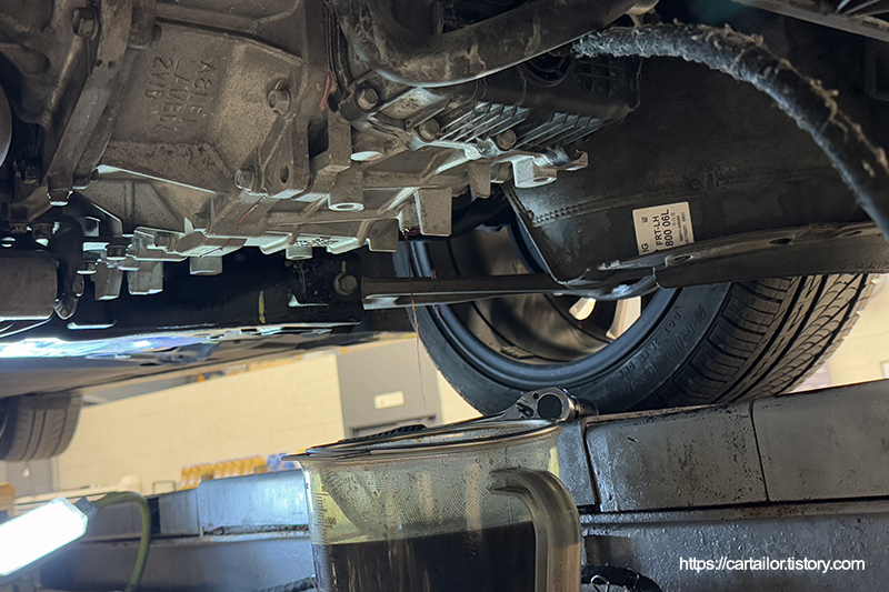 언더커버를 탈거 후, 기존 미션오일을 배출합니다.