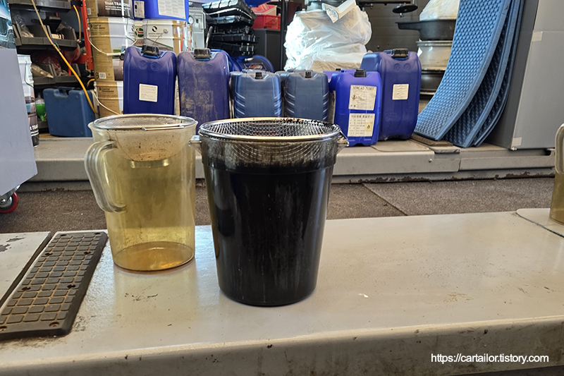 배출된 엔진오일입니다.