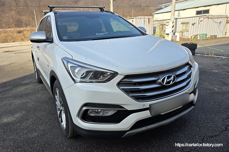 엔진오일교환 작업을 위해 입고된 싼타페DM 2.0 디젤 모델입니다.