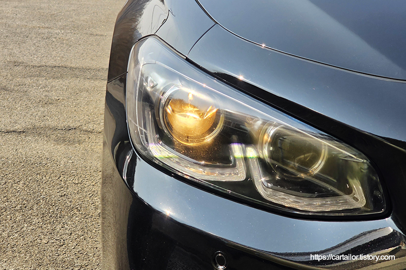 야간 시야 개선을 위해 합법 인증 LED 헤드라이트 튜닝을 진행하는 그랜저IG 2.4 GDI 모델입니다.