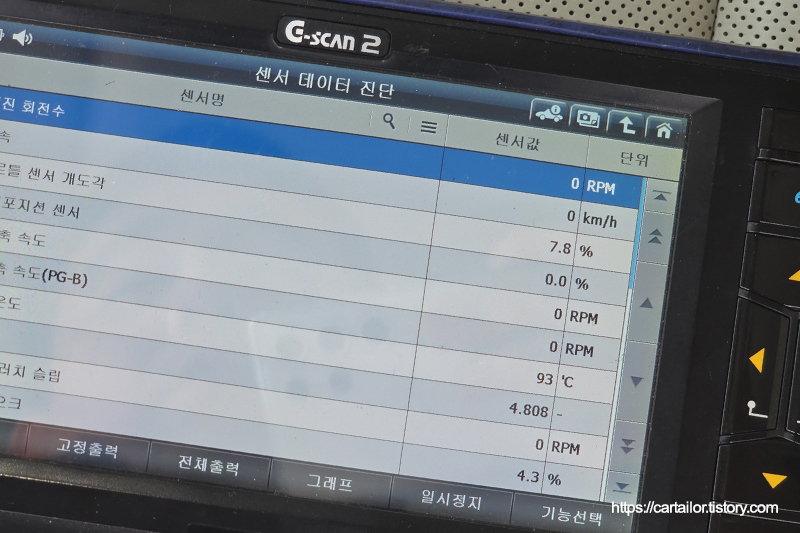 입고 직후 확인한 미션오일 온도로, 오일을 배출하기엔 유온이 높아 잠시 식히는 시간을 갖습니다.