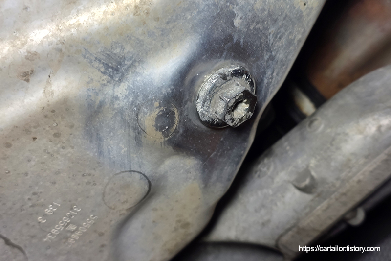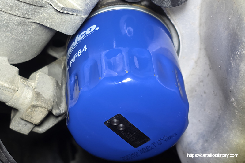 다시 시동을 걸어 작업 부위를 확인합니다. 오일필터, 플러그 모두 깨끗합니다.