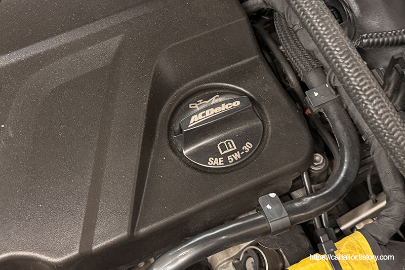 해당 차량은 쉐보레 DEXOS1 GEN3 SAE 5W-30 엔진오일을 사용하도록 메뉴얼에 명시되어 있습니다.