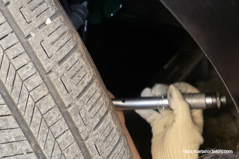 매 오일교환마다 함께 교체해야하는 드레인플러그 와셔를 신품으로 교환합니다. 오일 배출이 완전히 끝났으면 플러그를 손으로 돌려준 다음, 규정 토크로 조여 마무리합니다.