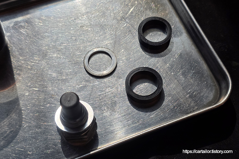 세척이 끝난 플러그에 신품 와셔를 걸어준 뒤, 레벨링플러그 오링도 함께 신품으로 준비합니다.