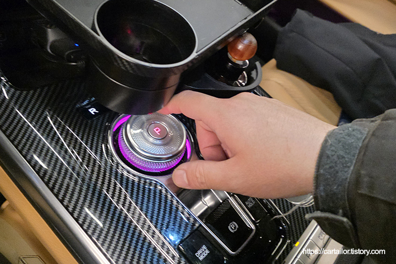레벨링 작업을 감안한 용량의 신유를 주입 후, 시동을 걸어 변속을 진행합니다. P단에 위치 후 레벨링 작업을 시작합니다.