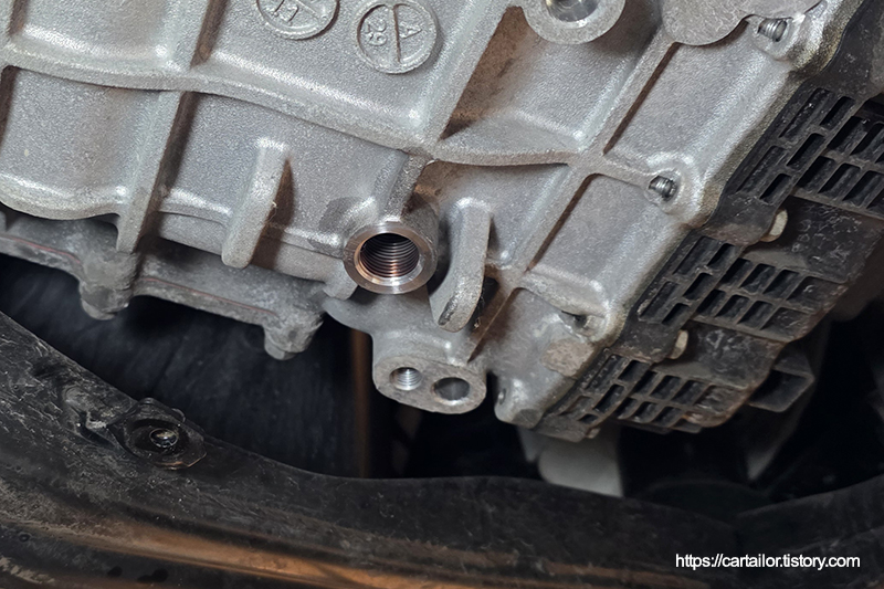 해당 차량의 경우, 미션오일 레벨링 절차가 하나 더 남아있습니다.