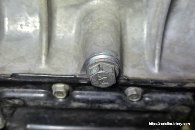 일회성 소모품인 드레인플러그 와셔를 교체합니다. 오일 배출이 끝났으면 플러그를 손으로 돌려준 다음, 규정 토크로 조여 마무리합니다.