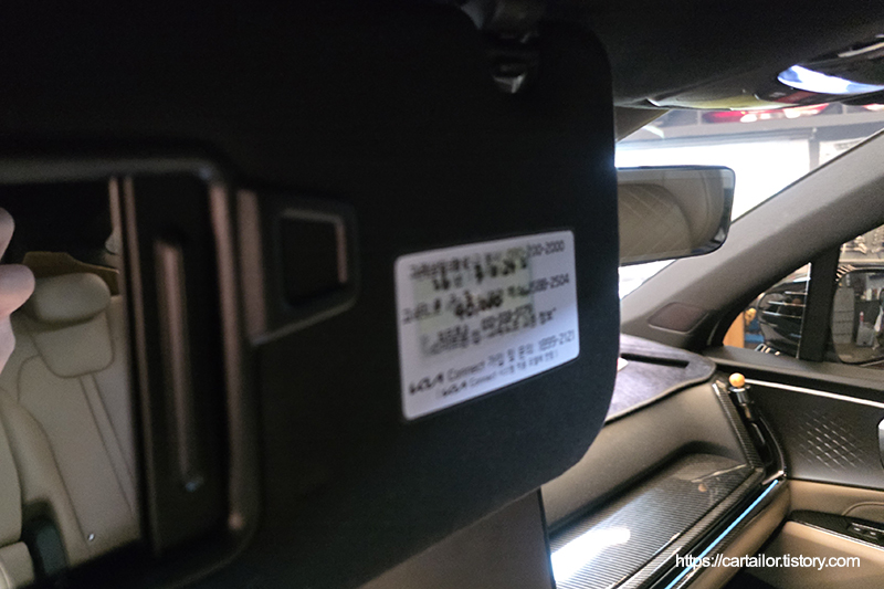 다음 엔진오일교환 주기를 기재한 스티커를 선바이저에 부착합니다.