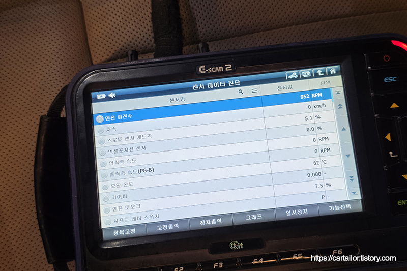 레벨링 작업을 감안한 용량의 신유를 주입 후, 시동을 걸어 변속 시퀀스를 진행합니다. P단에 위치 후 레벨링 작업을 시작합니다.