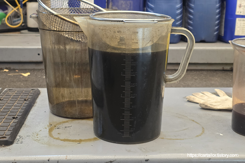 서비스커버를 탈거한 뒤, 오일필터 그리고 엔진오일을 제거합니다.