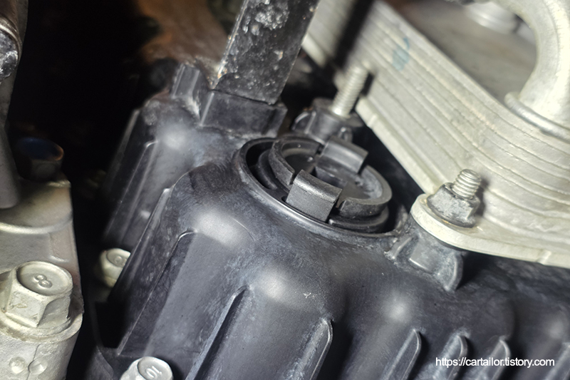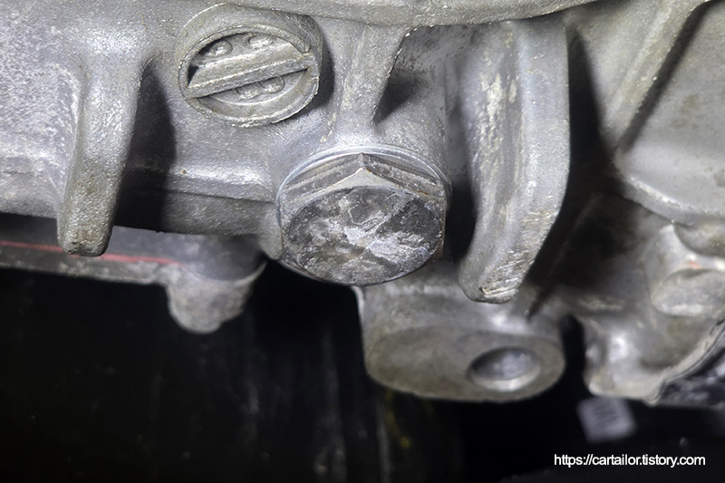 언더커버를 탈거 후, 기존 미션오일을 배출합니다.