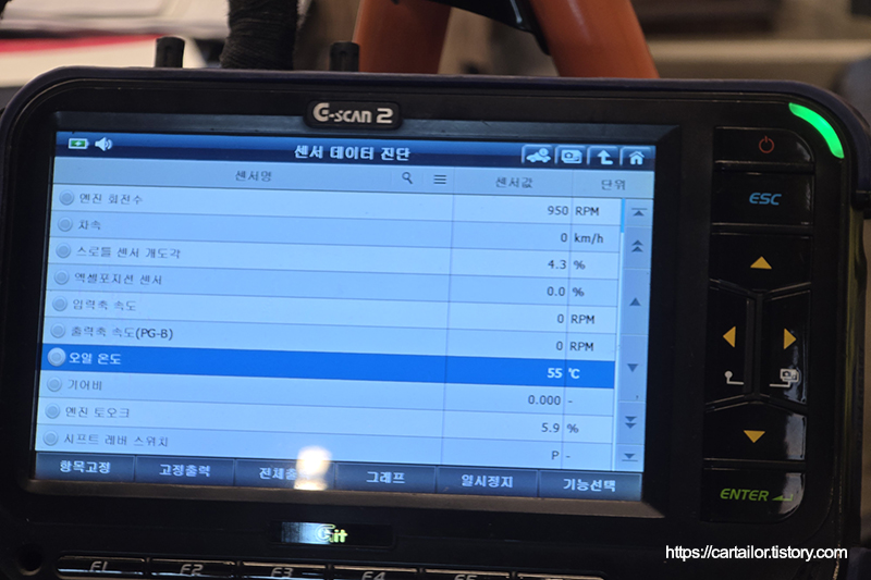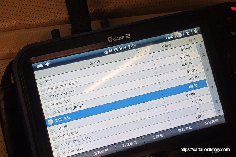 시운전을 다녀온 뒤, 작업 부위 및 진단기를 이용해 관련 폴트 여부를 확인합니다. 모두 깨끗합니다.