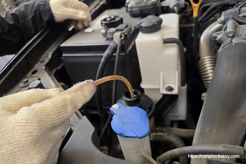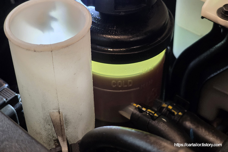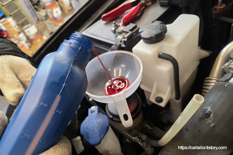 최종적으로 리저버 내에 있는 오일 레벨을 맞춰주면 작업이 끝납니다.
