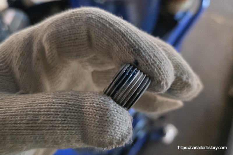 드레인플러그는 자성을 띄고 있어 정상적인 마모에 따른 메탈성 슬러지를 포집하고 있습니다. 별다른 이물질은 없어 특이사항은 없어 보입니다.