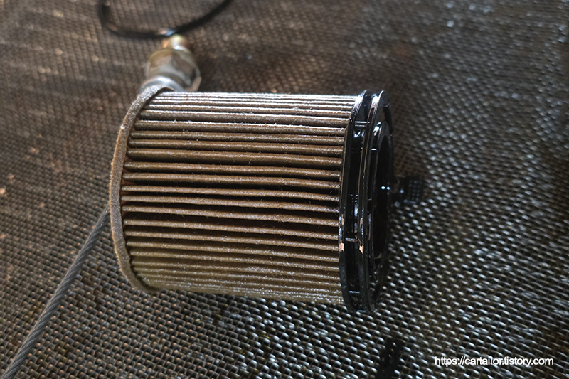다시 시동을 걸어 작업 부위를 확인합니다. 필터, 플러그 모두 깨끗합니다.