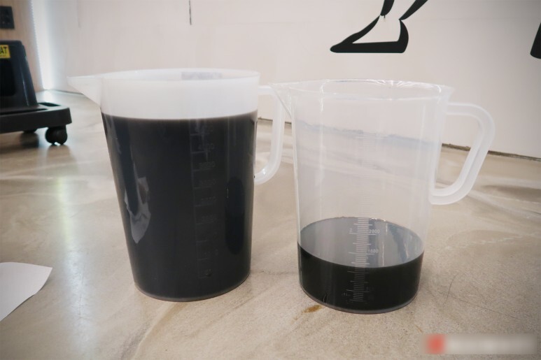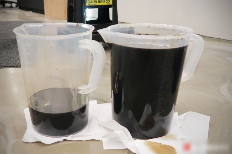 투명하던 플러싱 오일이 1차 폐유와 같이 거뭇거뭇한 색깔로 배출되었습니다