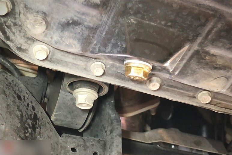 오일필터 하단에 위치한 드레인플러그도 신품으로 교체 후 규정토크로 체결합니다.