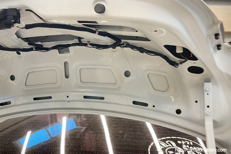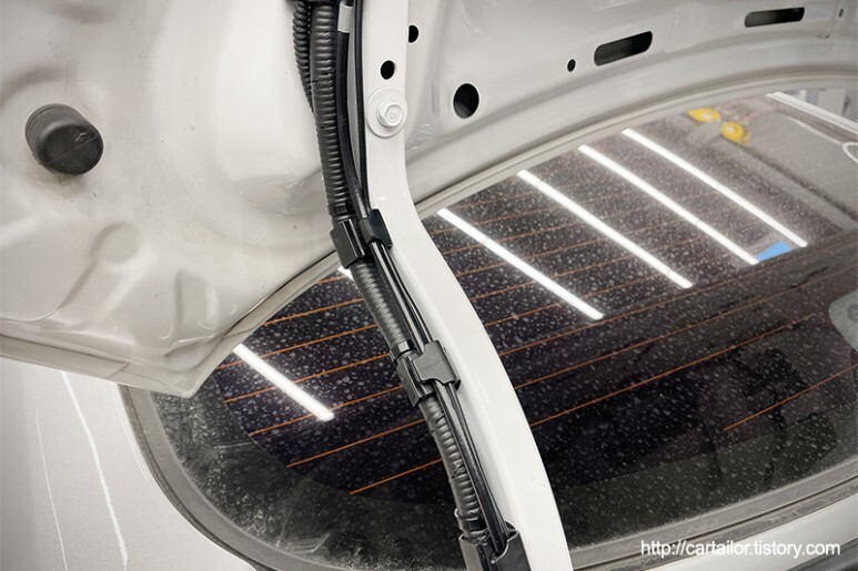 필요한 배선은 기존 순정 라인을 따라 잘 고정시켜 줍니다. 트렁크가 여닫힐 때 새로 추가한 배선이 당겨지거나 파손되지 않게 꼼꼼히 작업합니다.