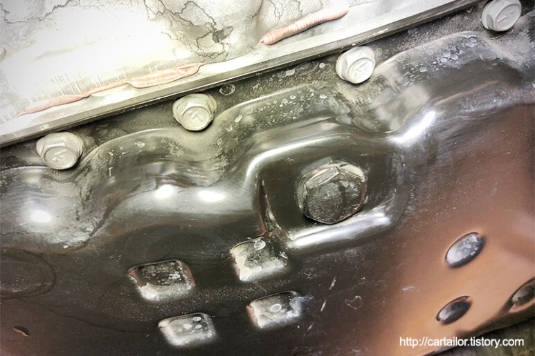 압착방식의 드레인볼트는 신품으로 교체합니다. 같은 변속기라도 연식이나 모델에 따라 희안하게도 사용되는 씰의 종류가 여러가지 입니다. 분명 상호 호환성이 있을 것 같긴 하지만 그래도 가장 정확한 방법은 차대번호를 통해 부품조회를 해 보고 준비하는 방법밖엔 없을 것 같습니다.